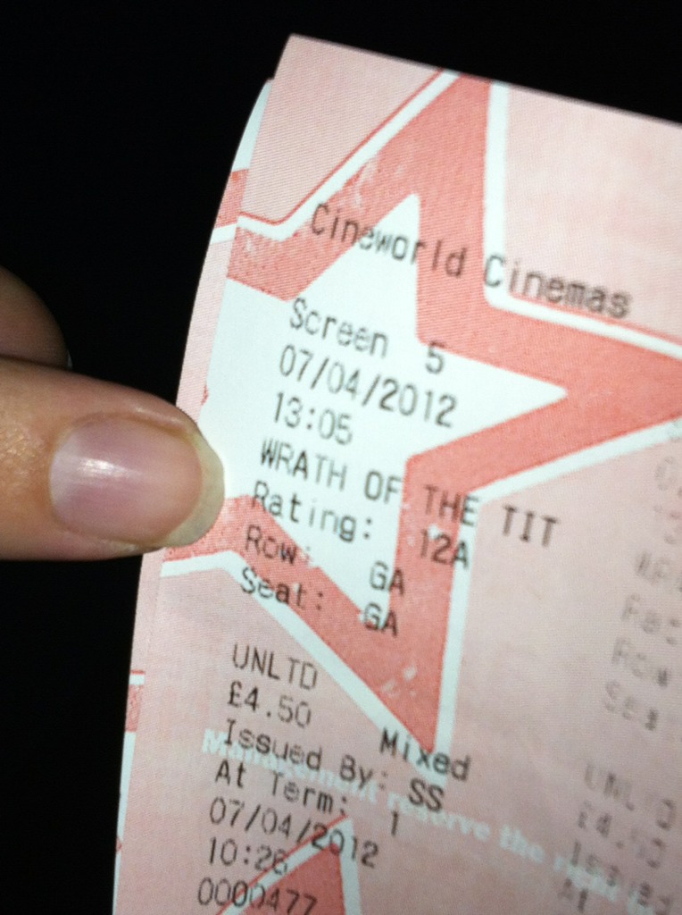The second film on Saturday afternoon was the sequel to the remake of the film that was somewhat based on the original stories of ancient Greece, Wrath of the Titans. We dutifully purchased our tickets and discovered the following.